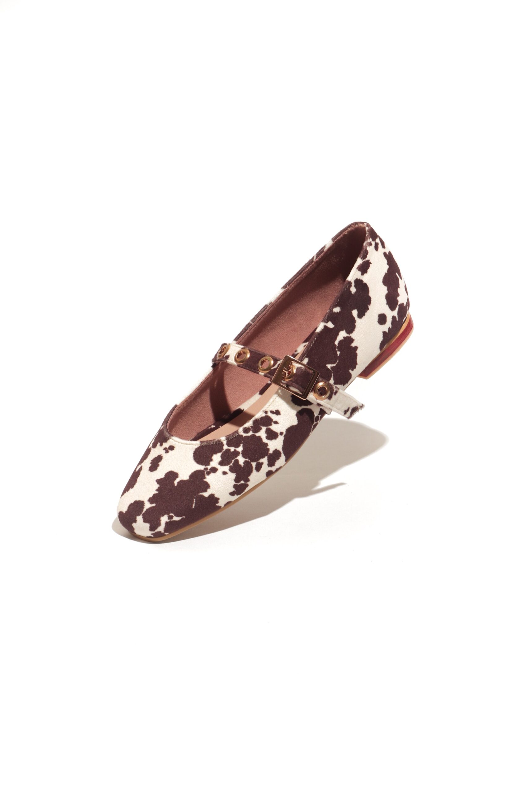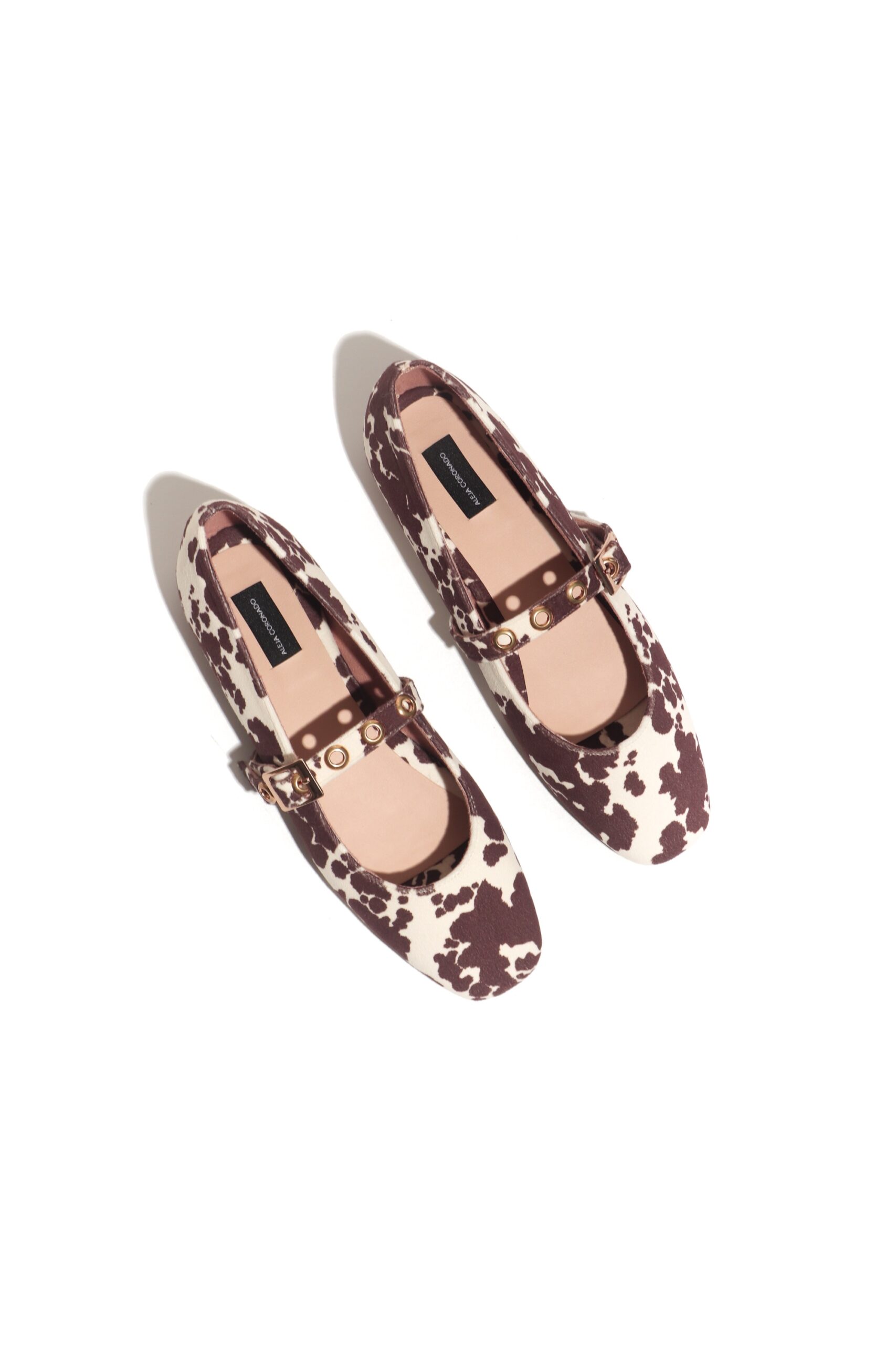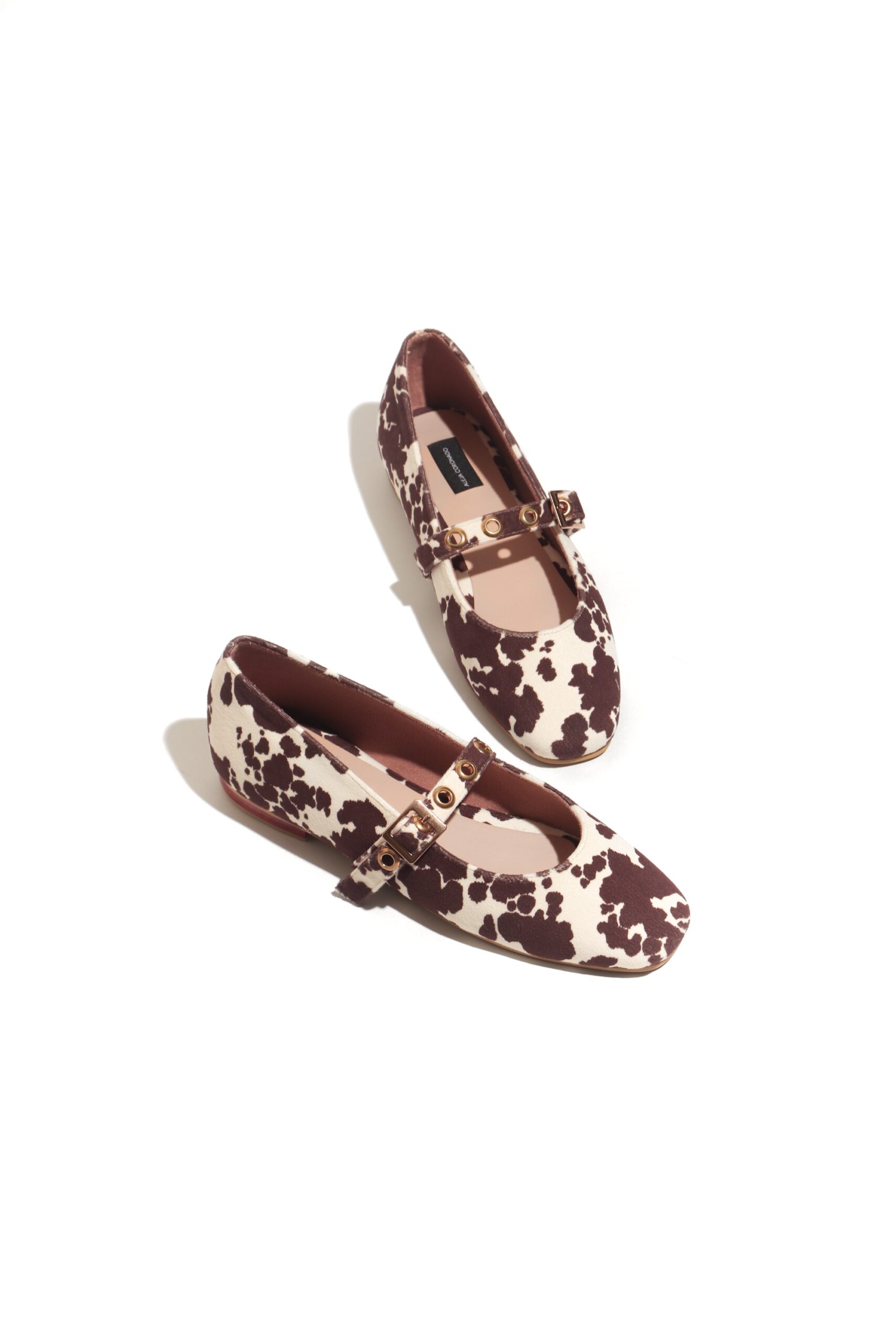 Bailarinas cow print café de escote redondo con detalle de trabilla con hebilla en empeine. Diseñados para mujeres con estilo único, que les gusta arriesgarse en sus looks y no temen destacar. Capellada: Material textil con textura suave al tacto Suela : neolite material sintético con resistencia al desgaste. Herrajes: material inoxidable zamak.